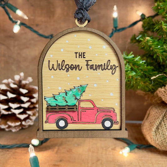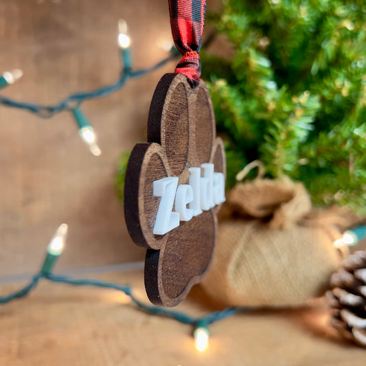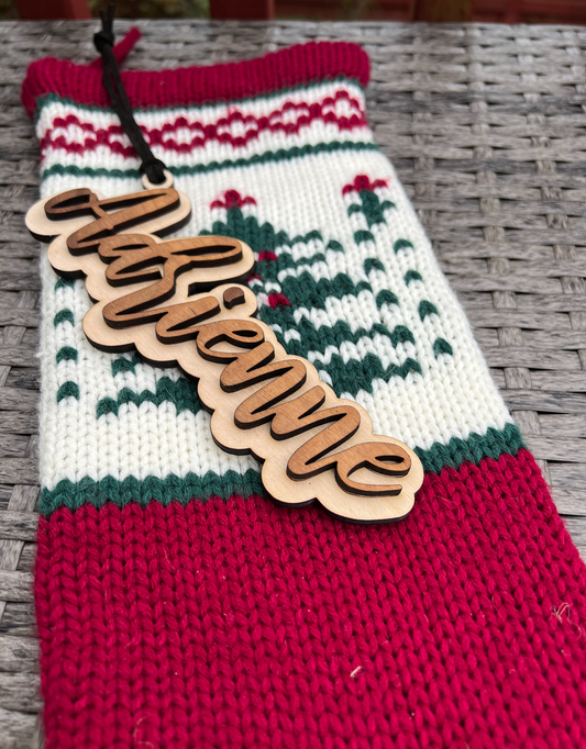 Modern Farmhouse Walnut Personalized Stocking Tag Christmas Ornaments