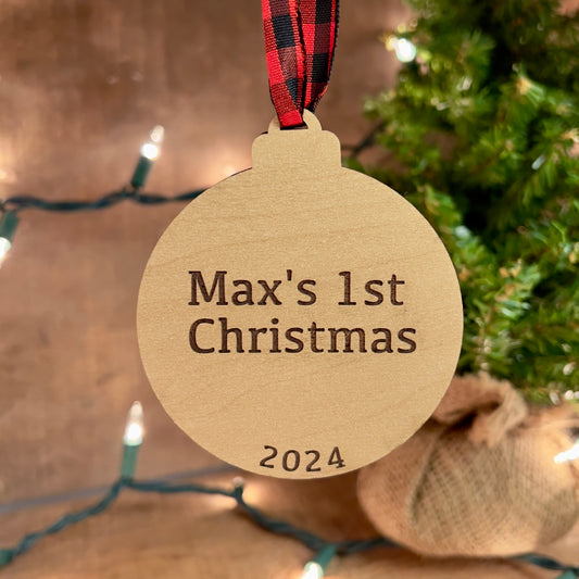 First Christmas as Mr. & Mrs. Walnut Wedding Ornament