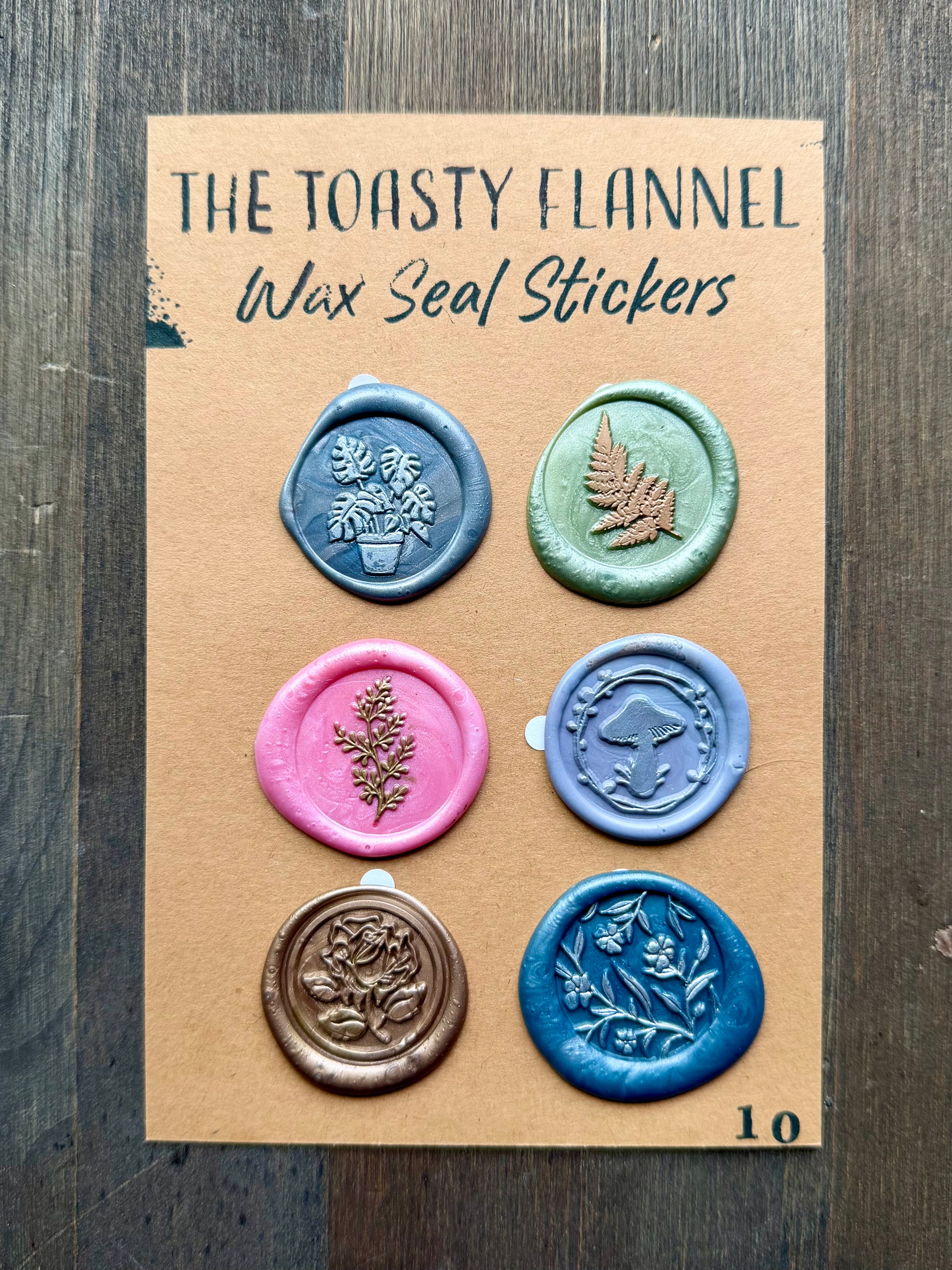 Each wax seal is hand-poured, hand-stamped, and completely unique. The color mixes swirl differently every time, so no two stickers ever turn out exactly alike. That’s part of the charm, they're perfectly imperfect little pieces of art.